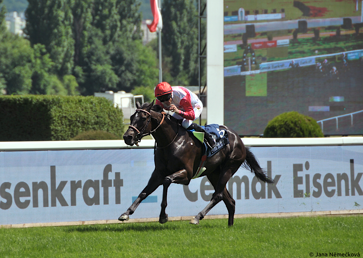 Nedělní bratislavský mítink přinesl klasické vítězství pro domácí odchovankyni Harmica (Legionar) i dvojkové druhé místo pro dvouletého Perfect Bay v nezapomenutelných barvách stáje Mikon. Nás ale zaujal hlavně dvojkový triumf King Mollenkotta, syna výborné americké trávařky Katdogawn. Jak jsme několikrát zmínili na našem facebooku, Katdogawn strávila několik sezón na českých pastvinách - a třebaže ji ani její potomky nemůžeme zařadit mezi materiály "českého chovu," ráda ji připomenu alespoň tady.