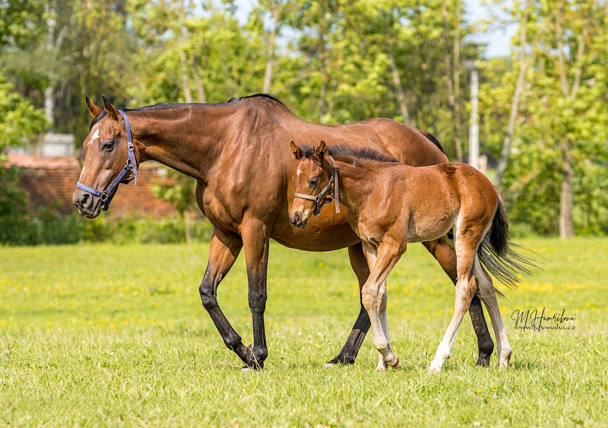 Obrovská gratulace tak samozřejmě směřuje i do domovského Hřebčína Střelice a my připojujeme fotografie Střelcovy matky Stubborn Love i Střelce.